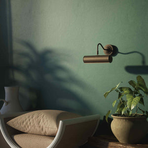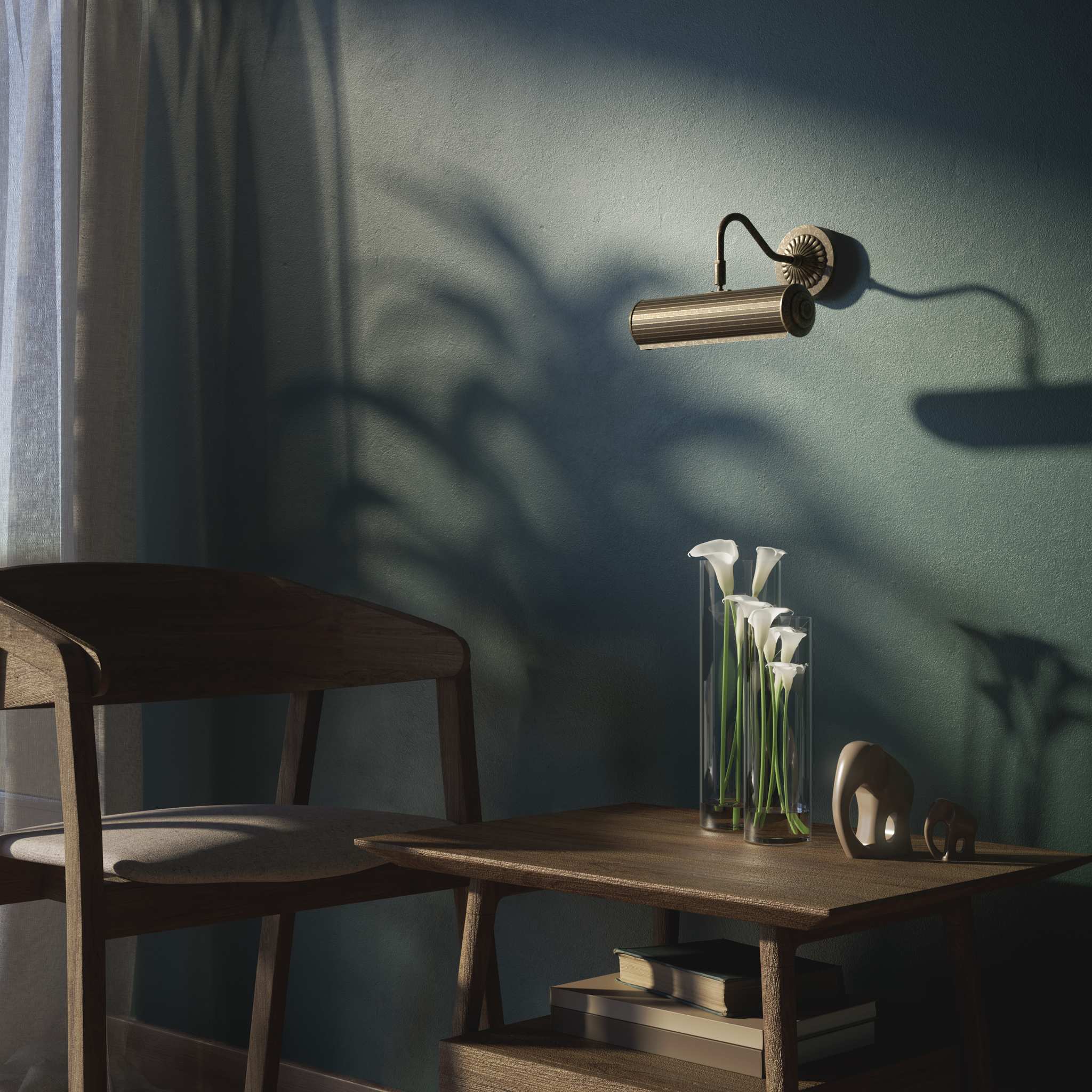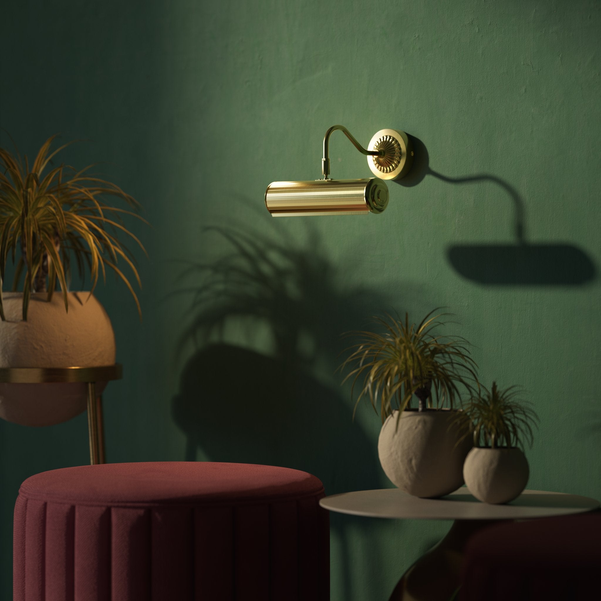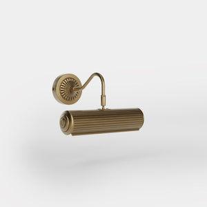 Cette sophistiquée applique tableau allie le style Art Déco à la fonctionnalité moderne. L'abat-jour cylindrique en laiton de 20 cm présente un raffiné motif à rayures verticales, mis en valeur par un savoir-faire artisanal qui confère caractère et personnalité à la lampe.